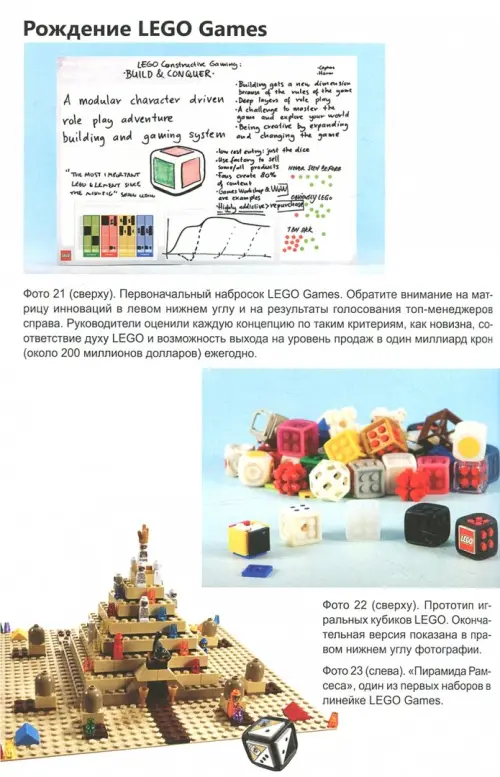 Рассказывается о принципах работы компании, производящей самые популярные в мире игрушки, подробно описывается ее уникальный подход к творческой деятельности и самая удивительная трансформация в бизнесе за последние годы. Перестав успевать за радикальными изменениями в бизнесе, LEGO стала нести убытки и была вынуждена полностью переписать кодекс инноваций, в результате чего превратилась в одну из самых прибыльных и динамичных компаний мира.
