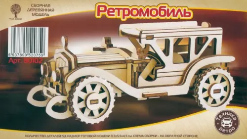 Сборная деревянная модель "Ретромобиль-2" (мини)