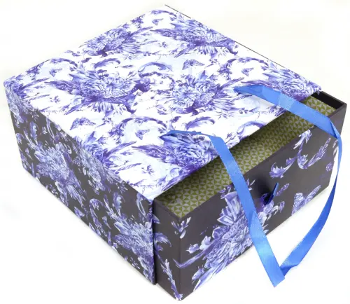 Коробка с полноцветным декоративным рисунком на внутренней и наружной части.
