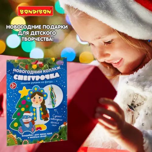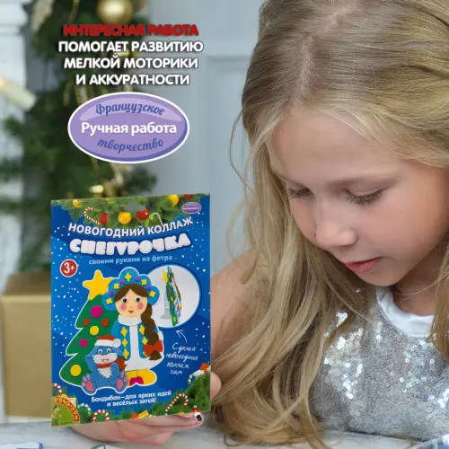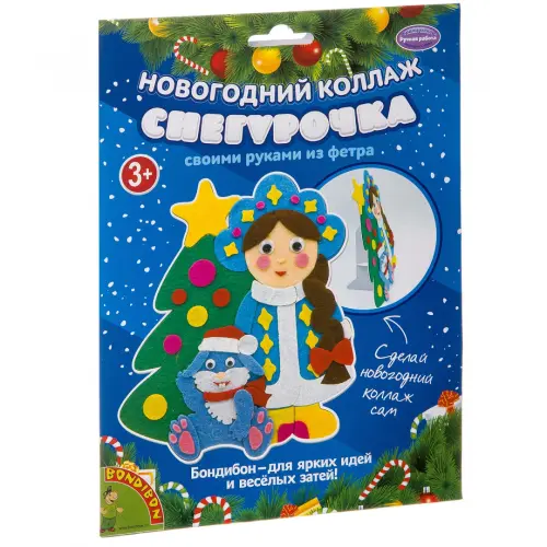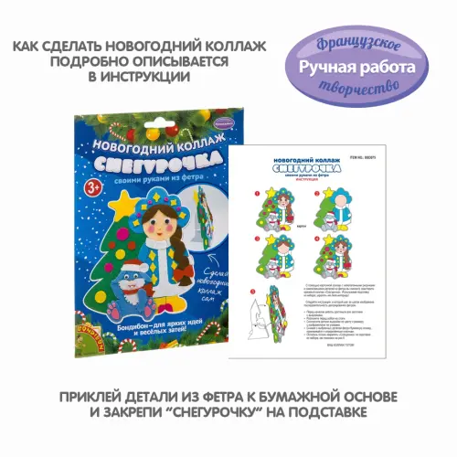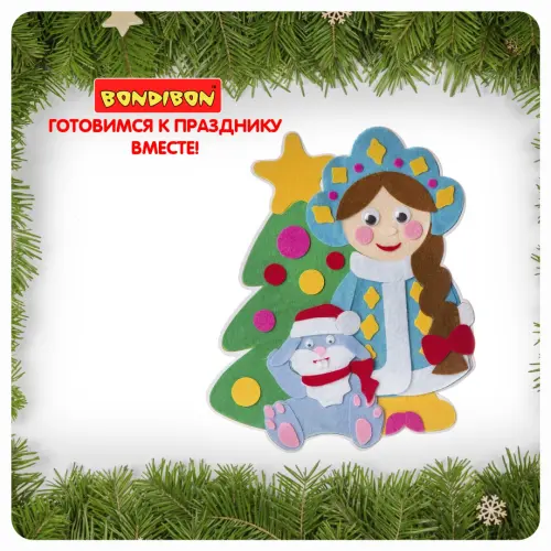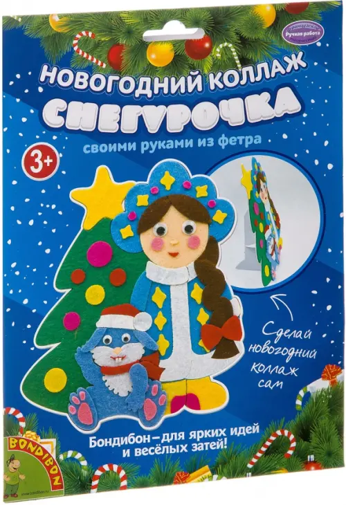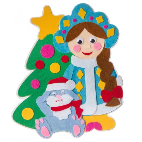 С помощью картонной основы с напечатанным рисунком и деталей из фетра вы сможете смастерить красивый коллаж "Снегурочка".