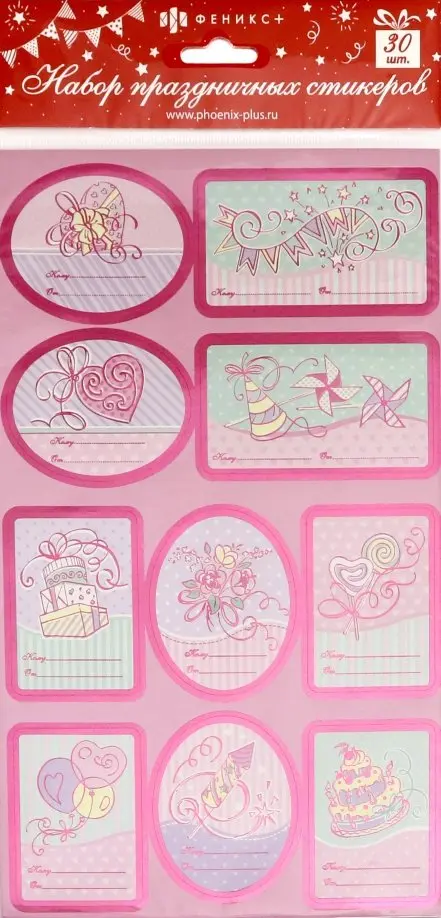 Набор самоклеящихся праздничных наклеек для художественно-оформительских работ, на бумажной подложке.