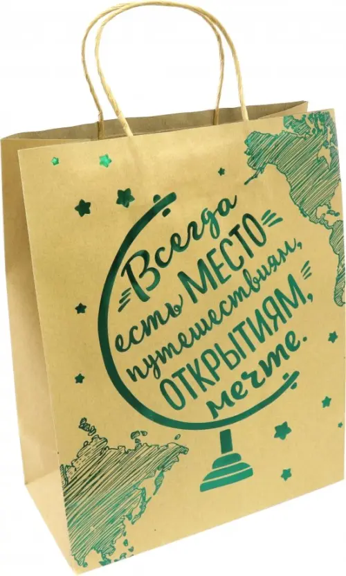 Пакет бумажный "Путешествия", 26х32,4х12,7 см