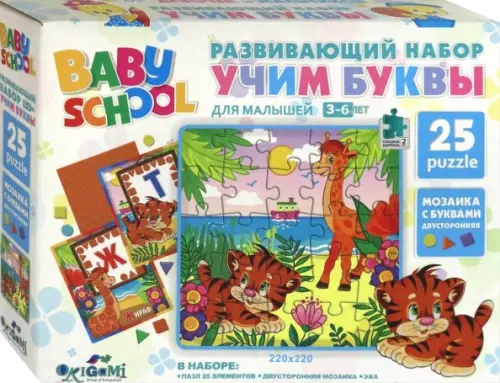 Развивающий набор. Учим буквы. Жираф и тигр + мозаика
