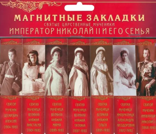 Магнитные закладки для книг Святые царственные страстотерпцы. Часть 1, 7 штук, 2,5х9,5 см
