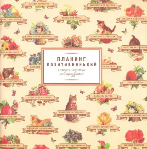 28 листов (53 недели) сплошного позитива – от понедельника до воскресенья, а ещё котики, цветочки и мотивирующие цитаточки.