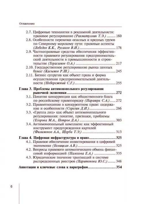 В настоящей коллективной монографии раскрыты основные правовые механизмы воздействия на экономические отношения, в том числе теоретические проблемы применения принципов и пределов государственного регулирования предпринимательства, соотношения частных и публичных интересов, публичных и корпоративных закупок, взаимосвязи цифровой инфраструктуры и права, а также некоторые вопросы правового регулирования экономической деятельности в зарубежных юрисдикциях.