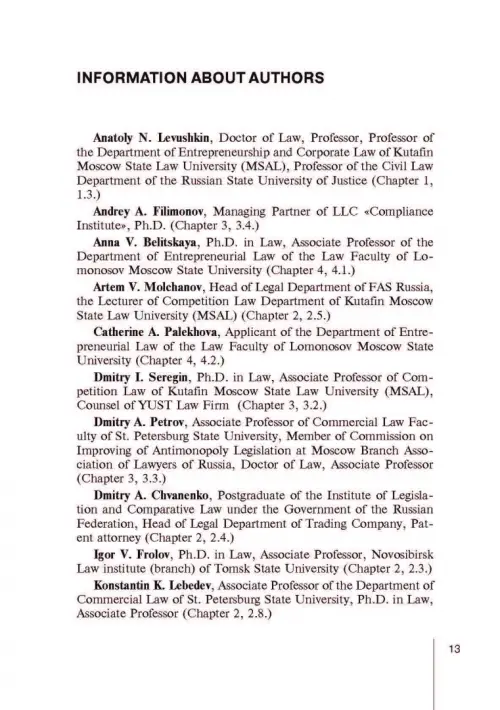 Книга предназначена для преподавателей, научных и практических работников, работников органов государственной власти, студентов, магистрантов, аспирантов, а также для всех, кто интересуется проблемами предпринимательского права и сравнительного правоведения.