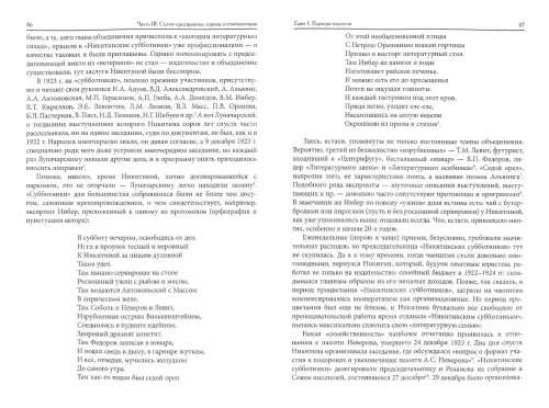 Особое внимание уделено специфике отечественных издательских моделей, типологии литераторских сообществ досоветской и советской эпох, анализу политических, юридических и коммерческих установок, обусловивших вытеснение частноиздательской инициативы с 1917 г., ее законодательное разрешение в период так называемой новой экономической политики и последующее запрещение. В связи с историей "Никитинских субботников" рассмотрены эпизоды творческих биографий А. Белого, М. Булгакова, М. Цветаевой и многих других писателей.