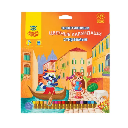 Карандаши цветные "Енот в Венеции", стираемые, 24 цвета