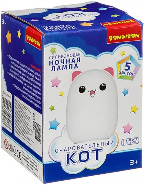 Ночная лампа – это замечательный силиконовый котик, которого можно гладить и обнимать. Светильник - ночник и игрушка! Включается нажатием кнопки на дне светильника. Прикосновением можно изменить цвет или выключить. Работает от встроенного аккумулятора, имеет в комплекте шнур для подзарядки с разъёмом USB.