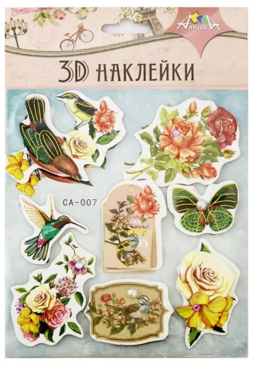 Наклейки 3D из бумаги, с глиттером и фольгой, 12х19 см