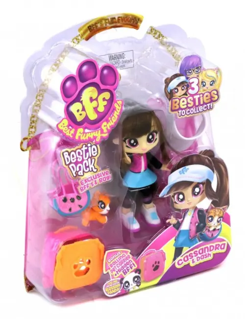 Кассандра - энергичная спортивная девочка. Не представляет свою жизнь без гимнастики. Кассандра одета в модные черные лосины, короткую голубую юбку, ярко-розовый бомбер с черными рукавами. На ногах - белые слиппоны на розовой подошве. Темные каштановые волосы убраны в высокий хвост. Волосы можно расчесывать и менять прически. Стильная белая бейсболка защищает от солнца.