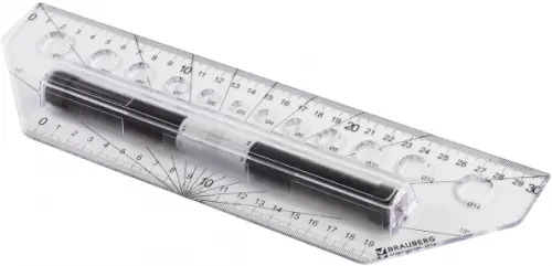 Линейка с роликом (рейсшина) идеально подойдет для нанесения ровных параллельных линий. На линейку нанесены две измерительные шкалы и углы транспортира. Также линейка снабжена трафаретом окружностей различных диаметров.
