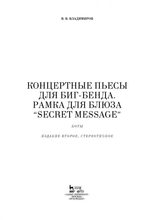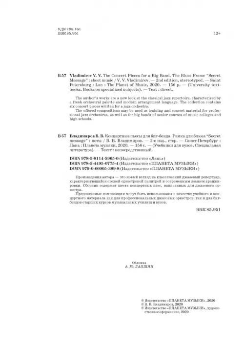 Если вы обнаружили ошибку в описании товара «Концертные пьесы для биг-бенда. Рамка для блюза "Secret message". Ноты» (авторы: Владимиров Виталий Вадимович), то выделите её мышкой и нажмите Ctrl+Enter. Спасибо, что помогаете нам стать лучше!
