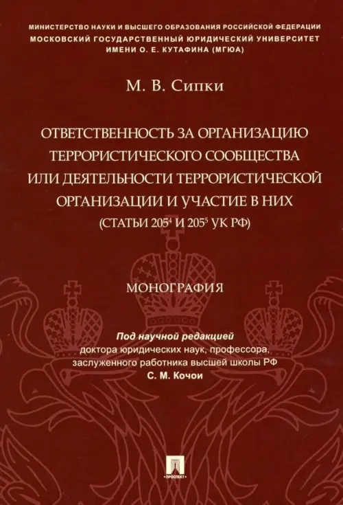 В книге рассматриваются вопросы ответственности за организацию террористического сообщества и участие в нем (ст. 2054 УК РФ) и организацию деятельности террористической организации и участие в ней (ст. 2055 УК РФ). Использованы доктринальные труды и материалы судебно-следственной практики по данной теме. Сформулированы предложения, направленные на совершенствование антитеррористического законодательства и корректировку практики его применения. Законодательство приведено по состоянию на декабрь 2018 г. Для студентов юридических вузов и факультетов, а также практических и научных работников.