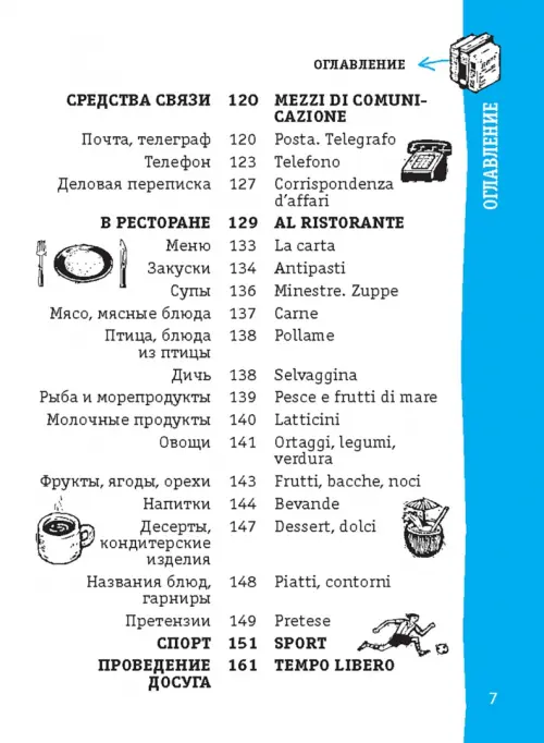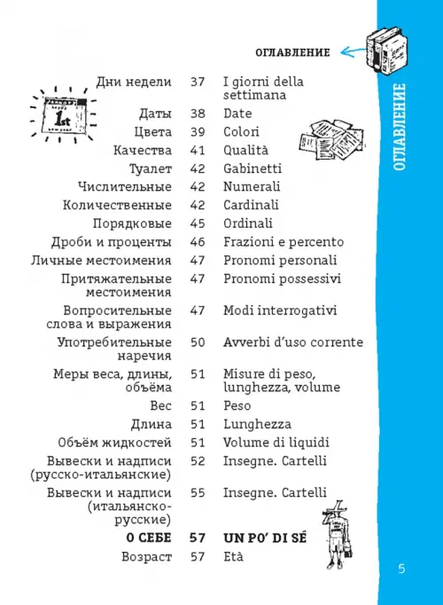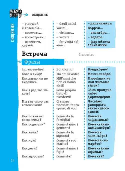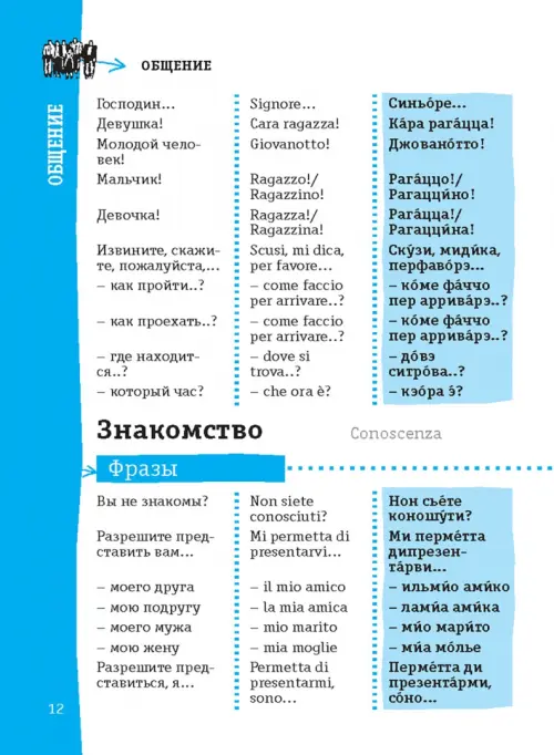 Итальянский разговорник содержит самые необходимые темы и наиболее типичные модели фраз и выражений. Итальянский текст снабжен практической транскрипцией, передающей звуки итальянского языка средствами русской графики. Каждый раздел обозначен своим цветом – вы легко и быстро найдете нужную информацию. Разговорник предназначен для всех, кто выезжает за границу и хочет иметь с собой в поездке надежного помощника.