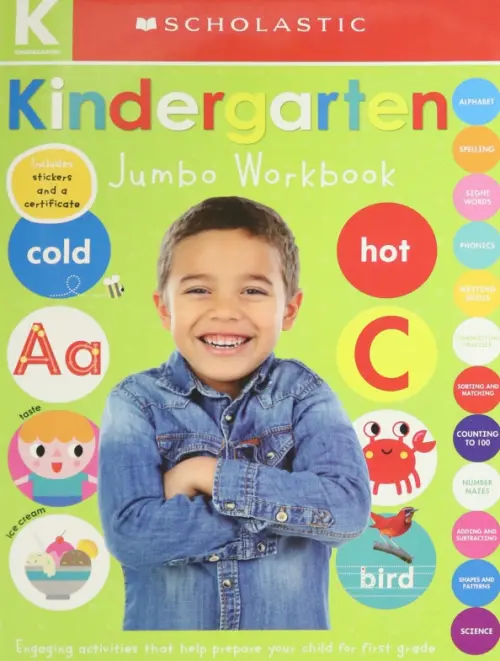 Giant Workbook: Kindergarten is designed to provide plenty of practice for children to succeed in kindergarten and beyond! A strong start helps ensure a child is able to benefit from the learning opportunities available in today's kindergarten classroom. This giant workbook includes practice in important kindergarten learning areas such as pen control, sorting, math, and early phonics. The bright, colorful pages with a delightful blend of photographs and illustrations make this workbook some of the most eye-catching and engaging available. Includes 24 pages of stickers! Scholastic Early Learners: Interactive books for hands-on learning. Perfect for babies, toddlers, preschoolers, kindergarteners, and first graders, too!