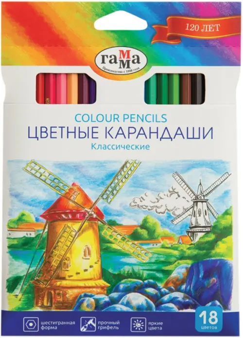 Карандаши цветные "Классические", 18 цветов