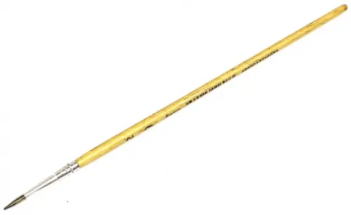 Кисть круглая из волоса Белки №2. При намокании волос белки собирается в плотный пучок, поэтому такие кисти подходят для рисования тонких линий и аккуратной работы. Пучок надежно вклеен в металлическую обойму. Обойма закреплена на деревянной ручке двойным обжатием. Благодаря многослойному лаковому покрытию пользоваться кистью удобно и приятно. Кисть предназначена для рисования гуашью, акварелью, акриловыми красками, а также для нанесения клея.