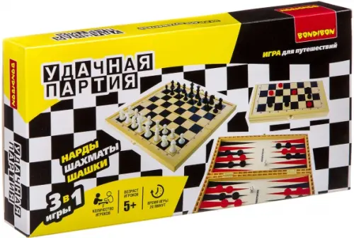 Если вы обнаружили ошибку в описании товара «Удачная партия 3 в 1. Шахматы, шашки, нарды», то выделите её мышкой и нажмите Ctrl+Enter. Спасибо, что помогаете нам стать лучше!