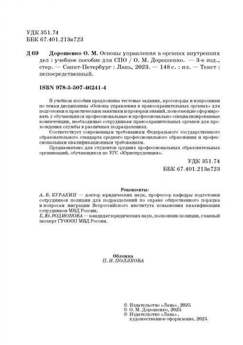 Если вы обнаружили ошибку в описании товара «Основы управления в органах внутренних дел. Учебное пособие» (авторы: Дорошенко Ольга Марковна), то выделите её мышкой и нажмите Ctrl+Enter. Спасибо, что помогаете нам стать лучше!