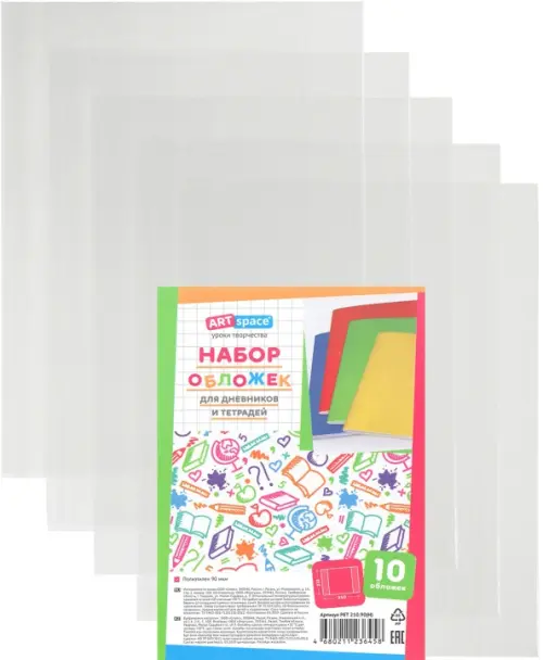Набор обложек для дневников и тетрадей, 90 мкм, 10 штук, 210x350 мм