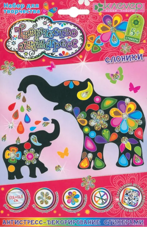 Комплектация: цветные и голографические стикеры, фон из матированного пластика, инструкция на упаковке. Картины-антистресс - это лучший способ отдохнуть и зарядиться энергией творчества! Ребёнок старше 5 лет легко наклеит на матированный полупрозрачный пластик силуэты большого и маленького слоников, заполнит их узорными радужными стикерами, а потом украсит картину блестящими голографическими элементами разнообразных форм.