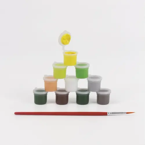 Дополнительно понадобятся (в комплект не входят): палитра для смешивания красок, емкость с водой для мытья кисти, салфетка для удаления воды с кисти.