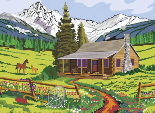 Картина по номерам с акриловыми красками. Домик в горах, А3