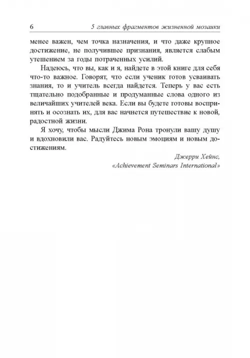 Эта книга познакомит вас с действительно работающей формулой достижения успеха. Она посвящена фундаментальным принципам, овладев которыми вы сможете добиться прогресса и процветания. Изложенные здесь идеи несут уверенность сомневающимся, надежду разочарованным, ободрение тем, кого угнетает сложность современной жизни. Теперь в вашем распоряжении есть тщательно подобранные и продуманные слова одного из величайших наставников ХХ века. Если вы будете готовы воспринять и осознать их, для вас начнется путешествие к новой радостной жизни.