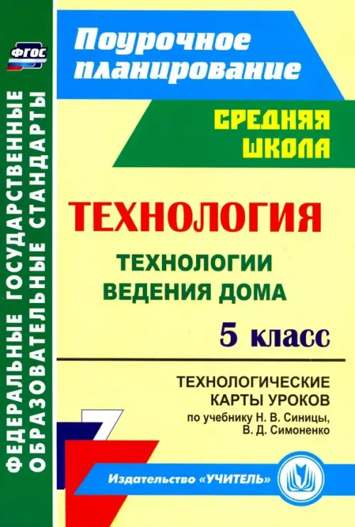Пособие содержит технологические карты уроков технологии в 5 классе, составленные по учебнику Н.В. Синицы, В.Д. Симоненко "Технология. Технологии ведения дома" (М.: Вентана-Граф, 2018). Проектирование урока рассматривается с позиции деятельностной педагогики. В рамках урока обозначены задачи обучающихся, выражающиеся в планируемых результатах освоения темы и предмета в целом, характеристике универсальных учебных действий; сформулированы педагогические задачи, позволяющие рационально и компетентно смоделировать образовательный процесс в соответствии с ФГОС основного общего образования; раскрыты виды и формы деятельности, способствующие развитию познавательной активности, коммуникативных умений, позволяющие школьникам осуществлять регулятивно-оценочные функции, формулировать учебно-практические задачи и находить пути их решения. Предназначено руководителям методических объединений, учителям технологии; рекомендовано педагогам дополнительного образования.