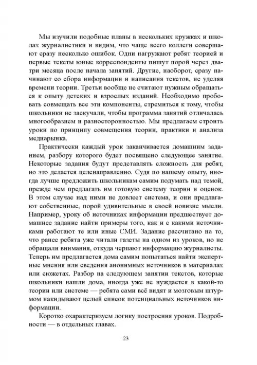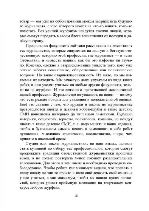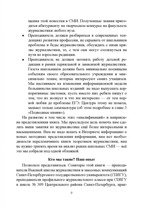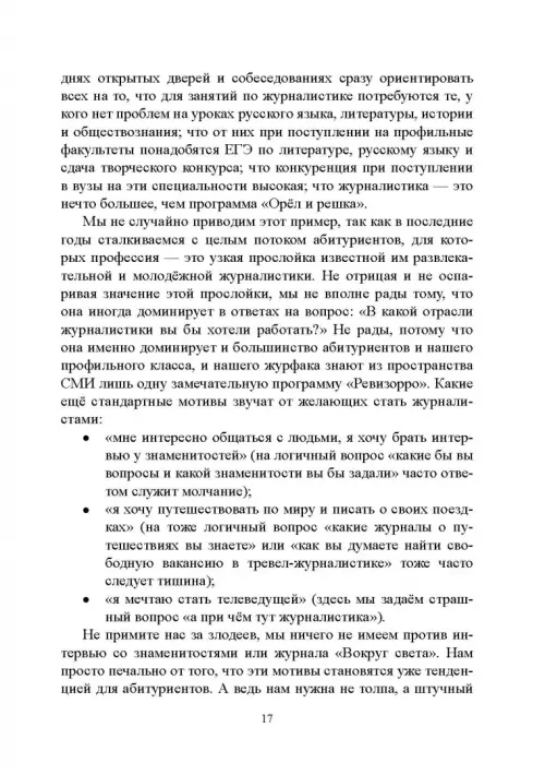 В сборнике собраны 45 упражнений, подробные планы 33 уроков, советы и рекомендации от преподавателей института «Высшая школа журналистики и массовых коммуникаций» Санкт-Петербургского государственного университета. Пособие предназначено для старшеклассников, мечтающих о профессии журналиста, для абитуриентов и первокурсников факультетов журналистики.