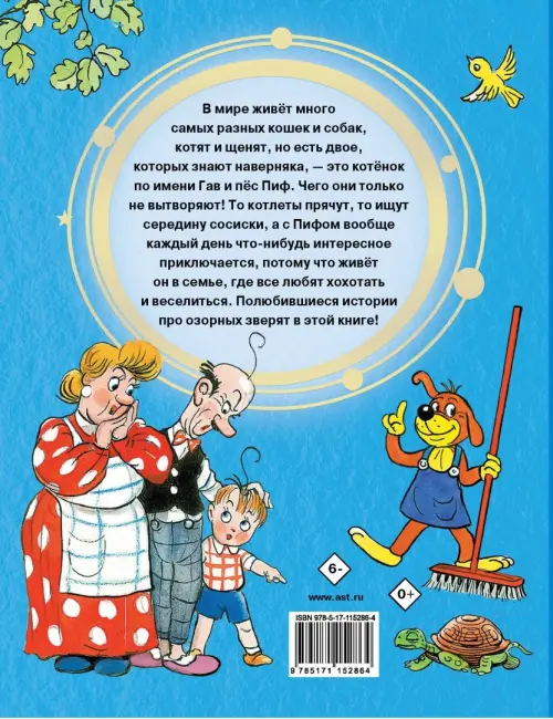 Остер Григорий Бенционович — писатель, драматург. Именно он придумал "Вредные советы", которые успели прочитать и полюбить многие мальчишки, девчонки и даже взрослые. В книге "Сказки малышам" собраны весёлые истории из цикла "Котёнок по имени Гав" и серия рассказов "Приключения Пифа". О шалостях и приключениях главных героев ты узнаешь из этой книги. А ещё по сказкам о котёнке Гаве был снят мультфильм! Для дошкольного возраста.