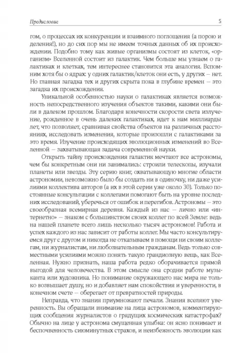 Четвертая книга из серии "Астрономия и астрофизика" содержит обзор современных представлений о гигантских звездных системах - галактиках. Рассказано об истории открытия галактик, об их основных типах и системах классификации. Даны основы динамики звездных систем. Подробно описаны ближайшие к нам галактические окрестности и работы по глобальному изучению Галактики. Приведены данные о различных типах населений галактик - звездах, межзвездной среде и темной материи. Описаны особенности активных галактик и квазаров, а также эволюция взглядов на происхождение галактик. Книга ориентирована на студентов младших курсов естественно-научных факультетов университетов и специалистов смежных областей науки. Особый интерес книга представляет для любителей астрономии.