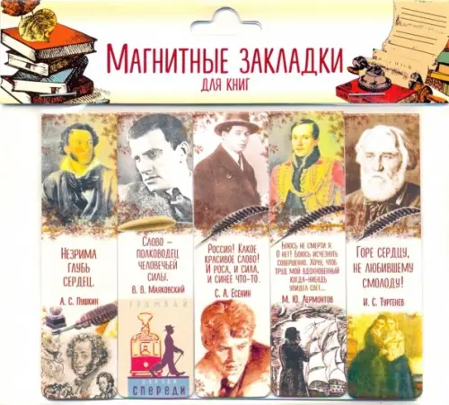 Если вы обнаружили ошибку в описании товара «Закладки с магнитом. Писатели», то выделите её мышкой и нажмите Ctrl+Enter. Спасибо, что помогаете нам стать лучше!