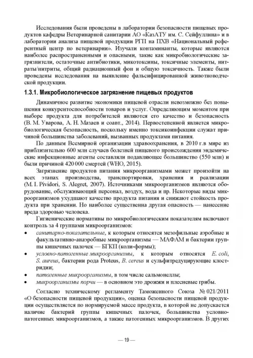 Монография предназначена для бакалавров и магистров направления подготовки «Ветеринарно-санитарная экспертиза», «Технология производства и переработки сельскохозяйственной продукции», а также аспирантов, докторов.