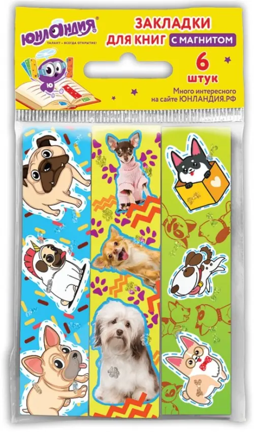 Закладки для книг с магнитом Собачки, 6 штук, 25x196 мм