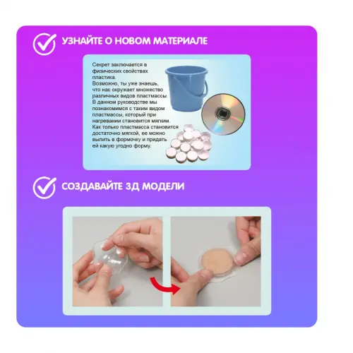 Забавный набор для создания точных трёхмерных копий разных мелких предметов. Узнай, как размягчить пластмассу и придать ей нужную форму, а также сделай копии своих любимых вещиц.