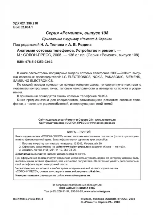 Книга предназначена для специалистов, занимающихся ремонтом сотовых телефонов, а также для радиолюбителей, интересующихся этой темой.