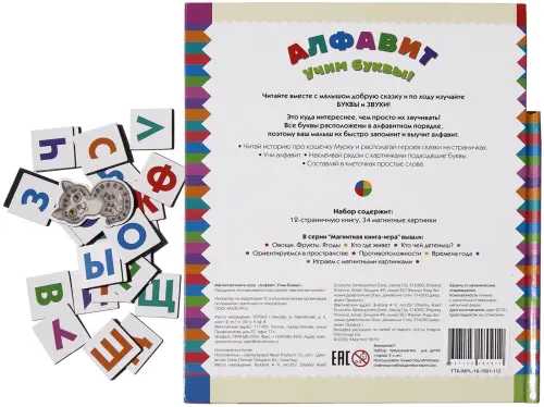 В комплекте: книга 12 страниц, 34 магнитные картинки.