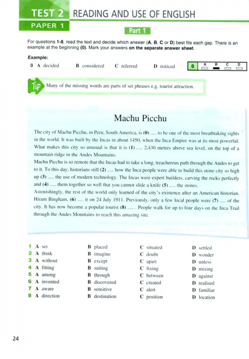 - Further practice on Word Distractors, Open Cloze Sentences, Key Word Transformations and Word Formation.