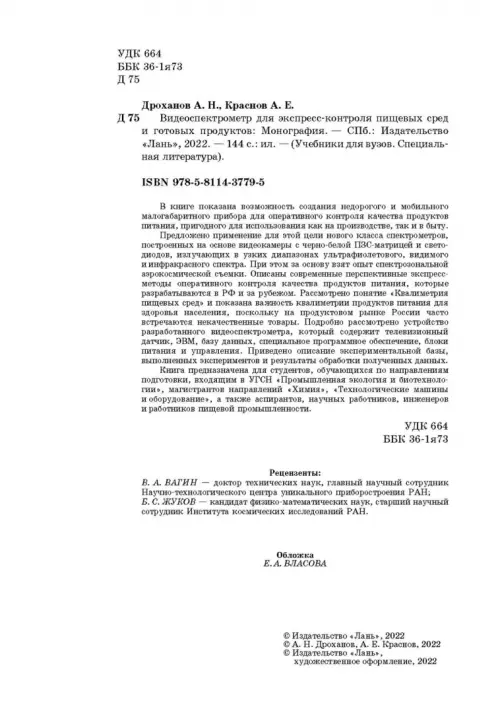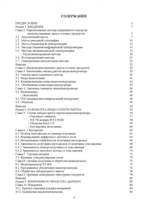 В книге показана возможность создания недорогого и мобильного малогабаритного прибора для оперативного контроля качества продуктов питания, пригодного для использования как на производстве, так и в быту. Предложено применение для этой цели нового класса спектрометров, построенных на основе видеокамеры с черно-белой ПЗС-матрицей и светодиодов, излучающих в узких диапазонах ультрафиолетового, видимого и инфракрасного спектра. При этом за основу взят опыт спектрозональной аэрокосмической съемки. Описаны современные перспективные экспресс-методы оперативного контроля качества продуктов питания, которые разрабатываются в РФ и за рубежом. Рассмотрено понятие «Квалиметрия пищевых сред» и показана важность квалиметрии продуктов питания для здоровья населения, поскольку на продуктовом рынке России часто встречаются некачественные товары. Подробно рассмотрено устройство разработанного видеоспектрометра, который содержит телевизионный датчик, ЭВМ, базу данных, специальное программное обеспечение, блоки питания и управления. Приведено описание экспериментальной базы, выполненных экспериментов и результаты обработки полученных данных.
