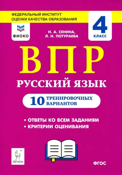 Пособия для подготовки к проверочным работам: 4 классЕсли вы обнаружили ошибку в описании товара «ВПР. Русский язык. 4 класс. 10 тренировочных вариантов. ФИОКО» (авторы: Сенина Наталья Аркадьевна, Потураева Любовь Николаевна), то выделите её мышкой и нажмите Ctrl+Enter. Спасибо, что помогаете нам стать лучше!
