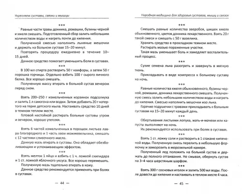 Периодически возникающие боли в спине и суставах... Кому из нас не знакомо это, мягко говоря, некомфортное состояние? Книга, которую вы держите в руках, поможет вам укрепить суставы и мышцы и избавиться от неприятных ощущений. В ней собраны проверенные рецепты народной медицины, разнообразные упражнения, а также даны рекомендации по питанию при проблемах с опорно-двигательным аппаратом. Позвольте себе выглядеть стройнее и моложе, быть гибкими и подвижными. Будьте здоровы! Хорошего вам настроения!