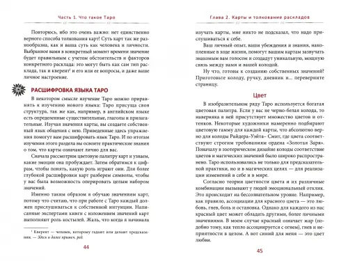 Автор описывает различные способы работы с картами Таро. Классические — расклады для прояснения тех или иных вопросов и предсказания будущего. И методы, дополняющие традиционную практику. Вы узнаете, что к Таро можно обращаться за помощью в решении повседневных дел, для обретения вдохновения в творчестве, для медитации, а также чтобы призвать желаемое и провести ритуалы. Советы и рекомендации автора будут работать с любой колодой.