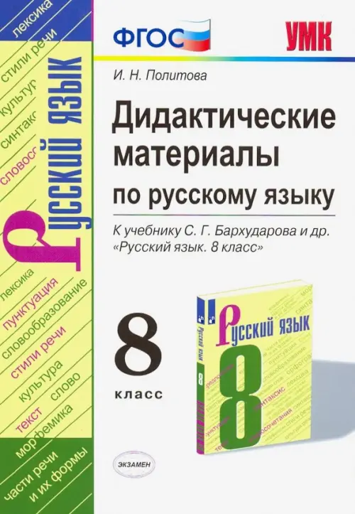 Русский язык. 8 класс. УМК. Дидактические материалы к учебнику С.Г. Бархударова. ФГОС