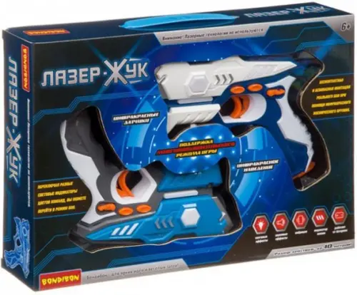 Bondibon представляет новое поколение бесконтактного игрушечного оружия! Вместо пулек и дротиков - световые пучки инфракрасного излучения! Бесконтактная и безопасная имитация реального боя происходит при помощи ИК-датчиков приема-передачи, что делает бой максимально реалистичным. Бластеры могут работать в многопользовательском режиме, играть можно не только вдвоем, но и целой командой!