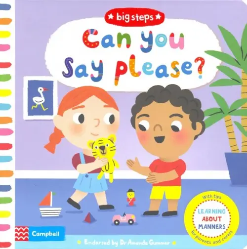 Серия "Большие шаги" предназначена для того, чтобы помочь маленьким детям справиться с новым жизненным опытом. В книге Марион Кочилко "Можешь сказать пожалуйста?" Том и Нэнси делятся своими игрушками и практикуются в хороших манерах. В этой новой книге с милой историей есть забавные откидные створки, которые нужно поднимать, и механизмы для перемещения, а также практические советы для родителей и опекунов на каждой странице.
