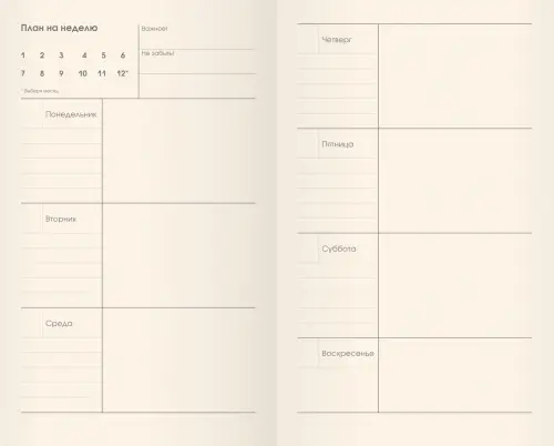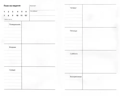 Обновленный современный внутренний блок с листами для еженедельного планирования и ведения ежедневных записей.