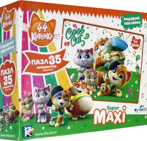 Пазл-maxi + наклейки. 44Cats. Крутые котята, 35 элементов